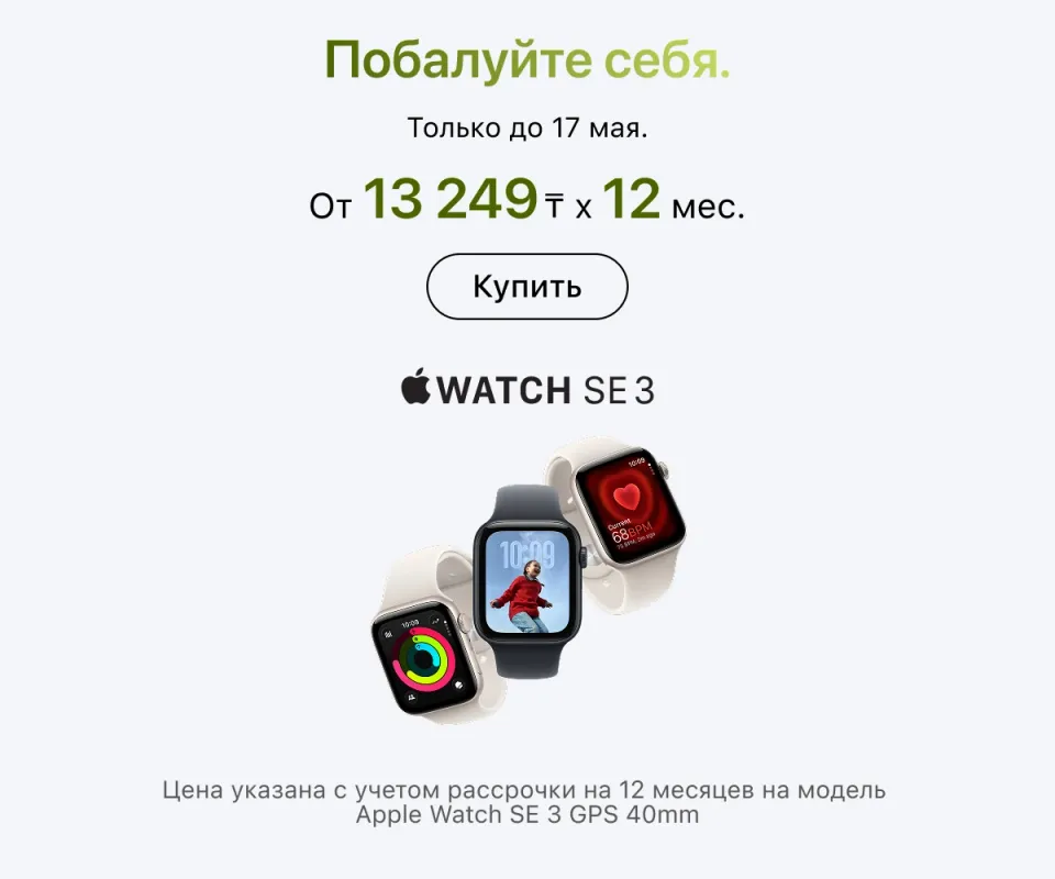 Загляните в официальный магазин Apple техники уже сейчас. Если вы онлайн покупаете новый гаджет и аксессуары к нему в iSpace, доставка действует по всей стране. А если хотите прийти в физические магазины, проверьте актуальные адреса на нашем сайте. Оформляйте заказ и присоединяйтесь к нашему сообществу.