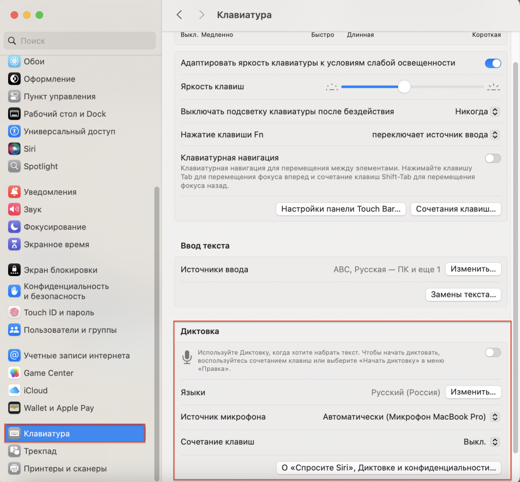 – откройте «Системные настройки» > «Клавиатура»;