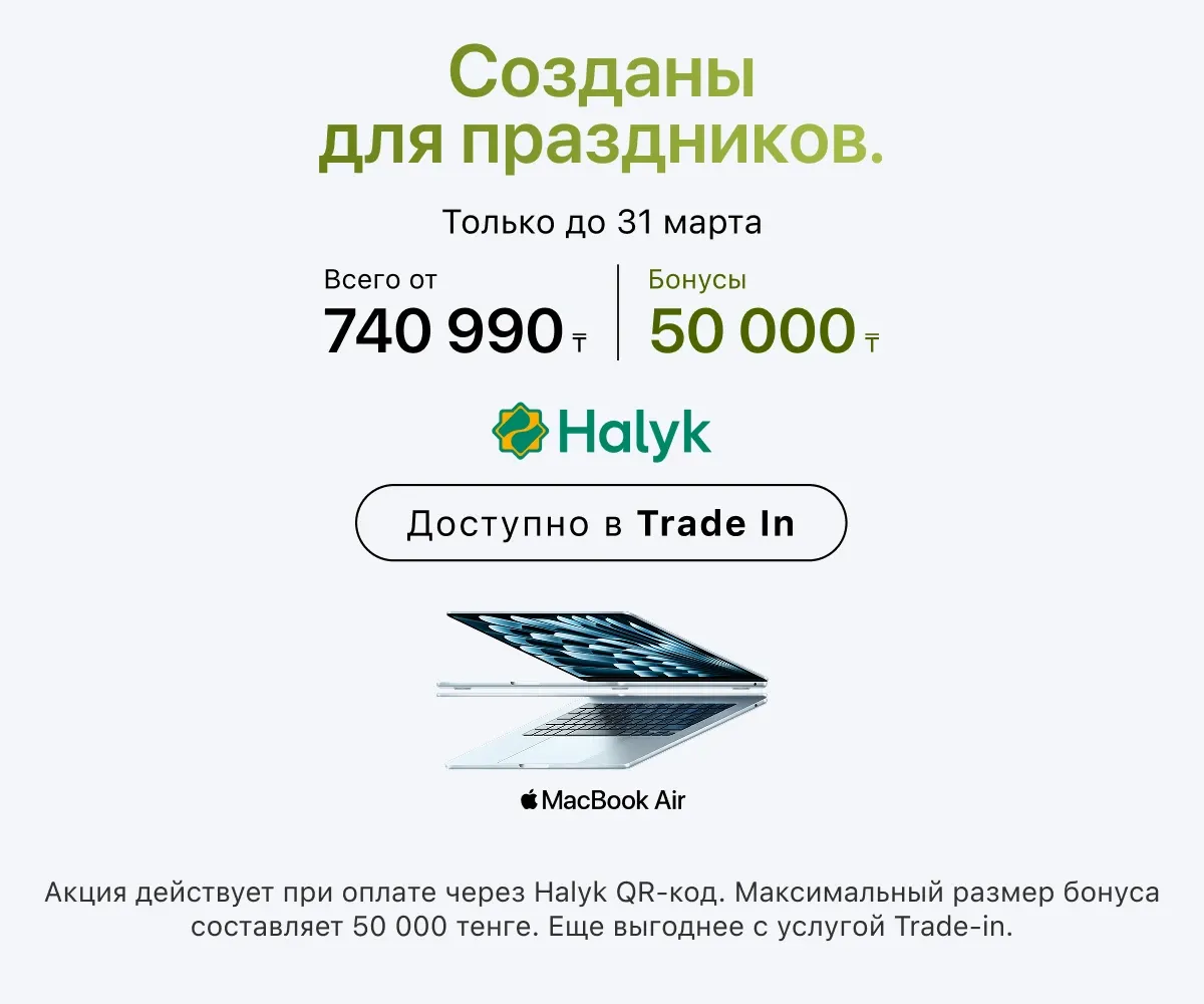 Получите 10% от стоимости бонусами на карту Halyk.*