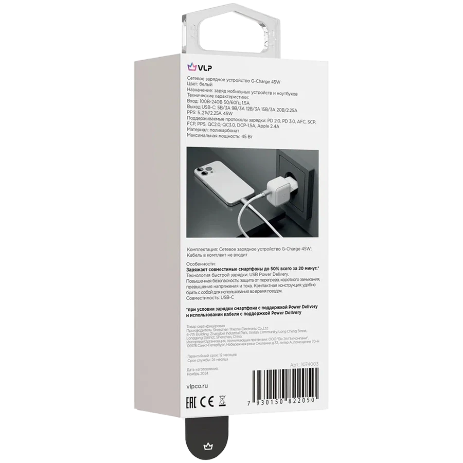Қуат адаптері VLP 1*USB-C, 45 сейсенбі