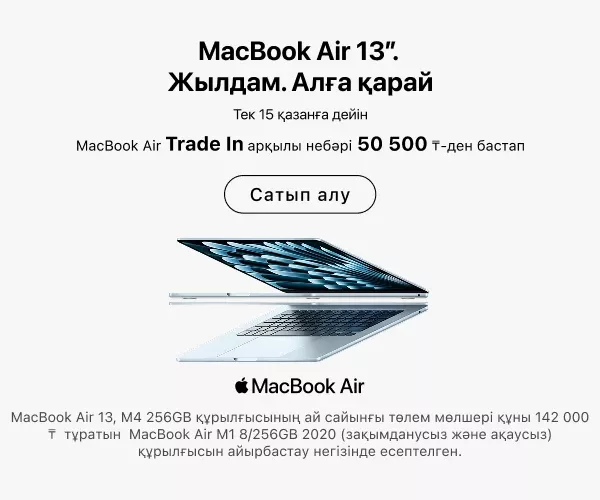 MacBook Air Trade-in арқылы небәрі айына 20 249 ₸-ден бастап Толығырақ